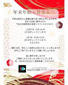 ※但し、12/31,1/1は時短営業となります。