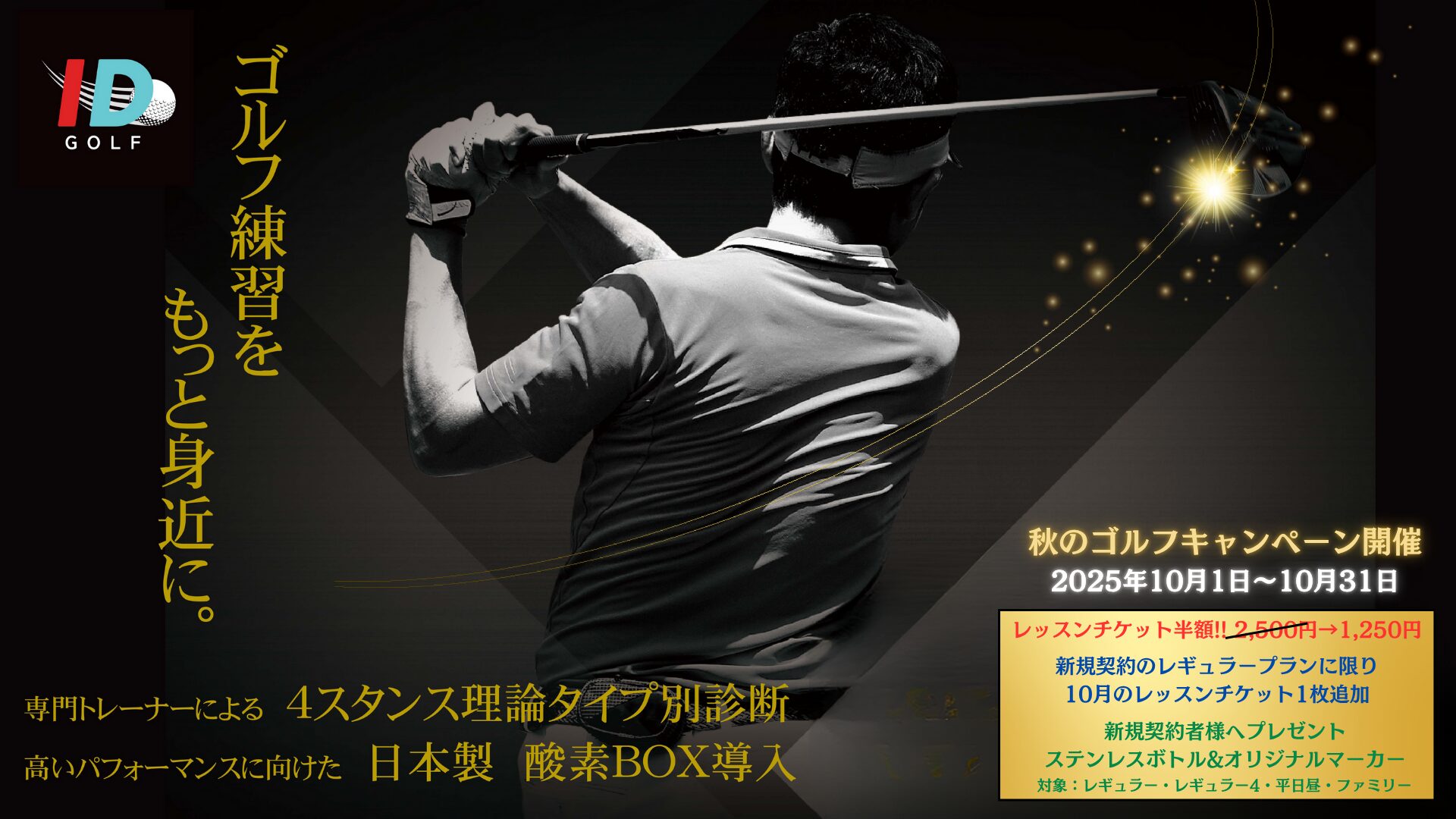 練習場ではできない、シミュレーション装置から出てくるショット分析、4スタンスを用いた体の特徴を知ったスイング作り、レッスンプロからのワンポイント、いつでも動きやすい体づくりのための酸素ボックスや整体。